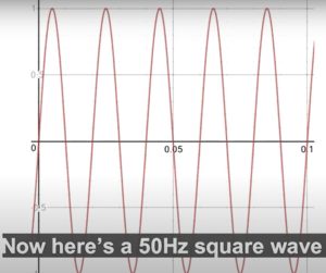 3. Here’s a 50Hz square wave – it completes 50 positive-to-negative cycles every second. Count the peaks – there are 50.