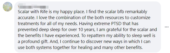 After years of PTSD and sleep issues, a user found profound relief and improved sleep quality using the Scalar machine and Rife frequencies.