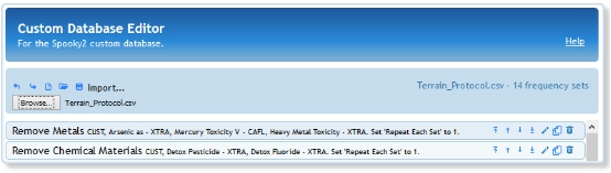 FrqEd is a custom database editor for Spooky2 frequency sets. FrqEd runs inside your browser. It can create a database, edit an existing database, merge databases, and search the Spooky2 frequency database and add Spooky2’s frequency sets to your custom frequency set. While Spooky2 already provides much of this functionality via the CSVed application, CSVed is cumbersome and difficult to use as it has no specific knowledge of the Spooky2 database parameters.