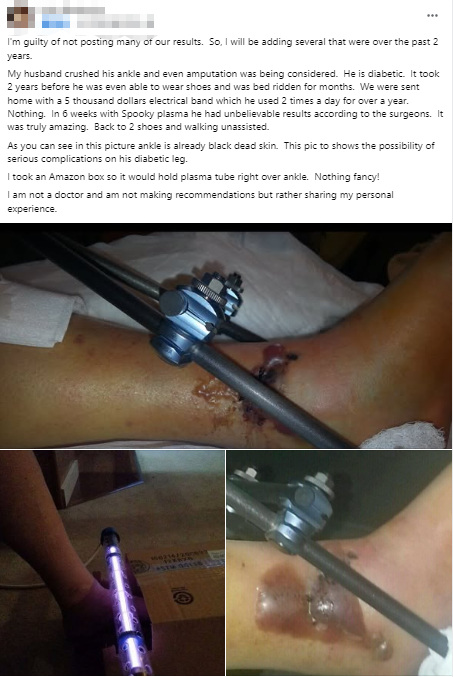 A diabetic man facing amputation due to a crushed ankle healed remarkably in six weeks using Spooky2 Plasma treatment, impressing his surgeons with the recovery.