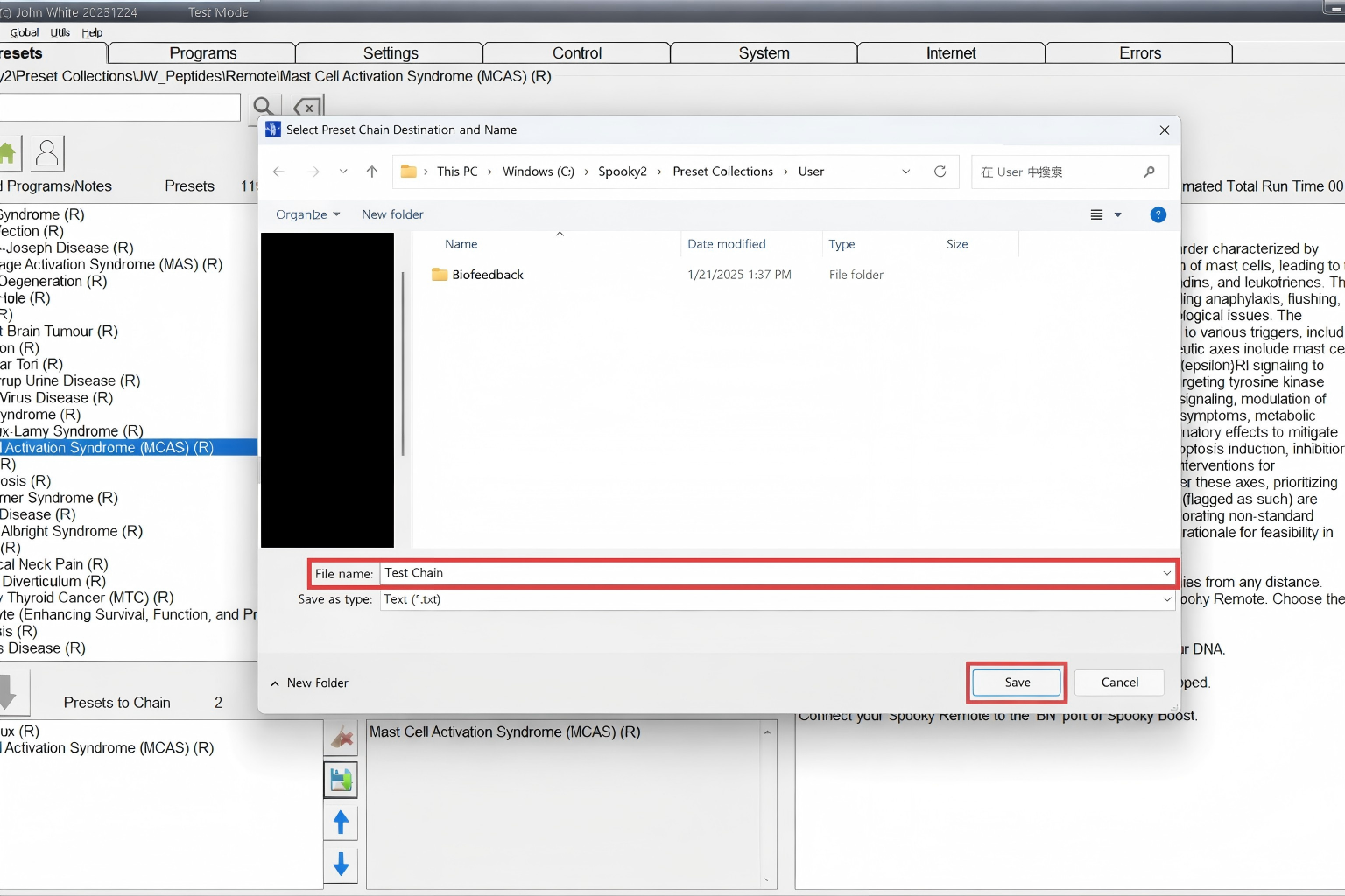 Click the SAVE icon on the right side of the “Presets to Chain” box.