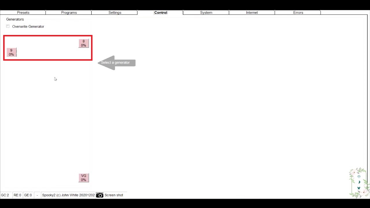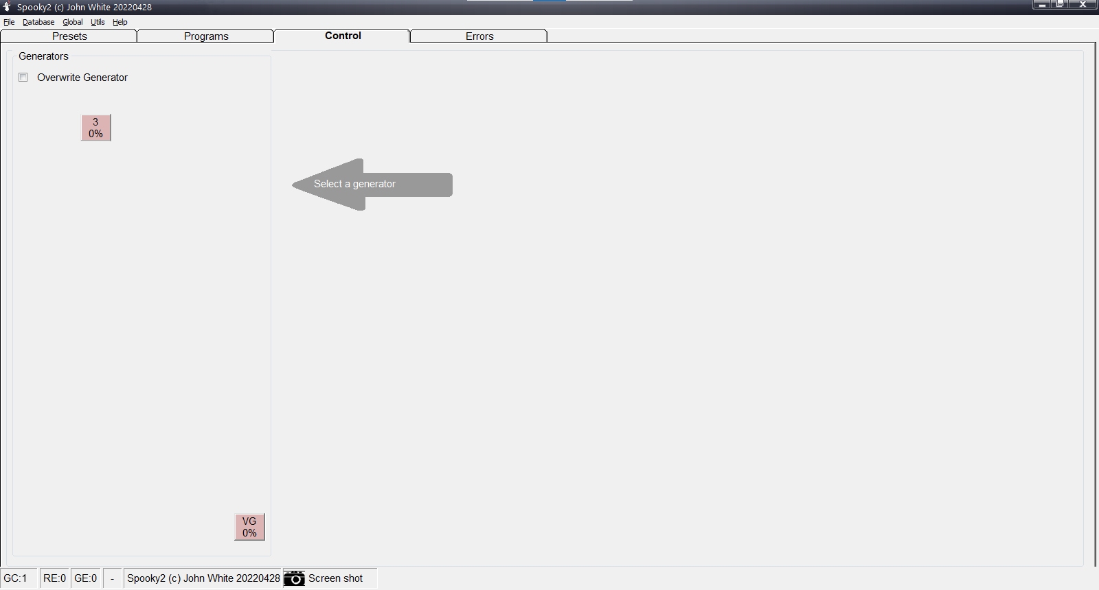 Go to the Control tab, and you will see your generator on the left side of the screen. If your generator is not detected, go to Utils and click Rescan Devices.