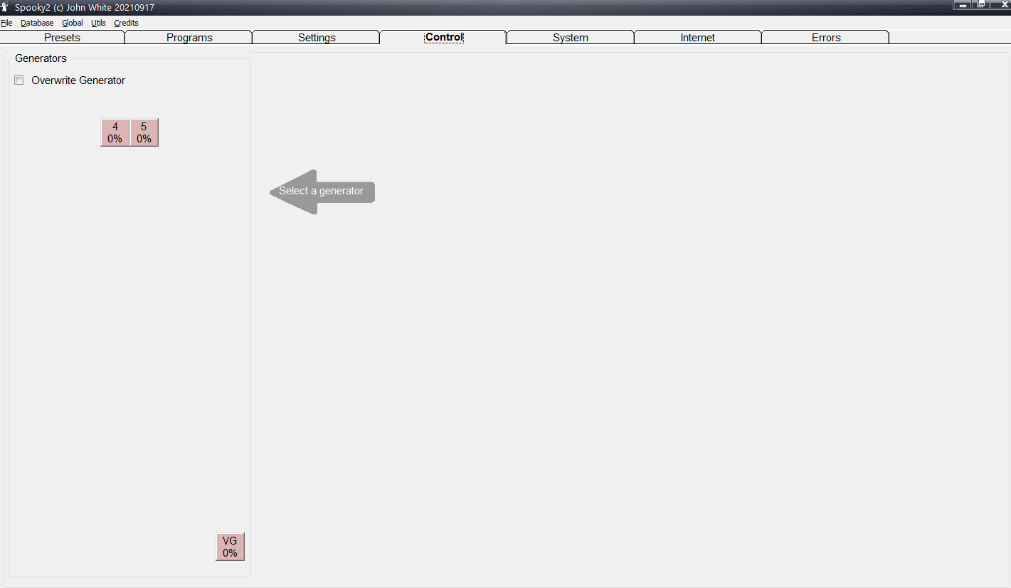 Go to the Control tab, select “Overwrite Generator”. Choose either of the two generators on your GeneratorX. It does not matter if you select generator #4 or generator #5. They both share the same programs. In this example, l will choose generator #4.