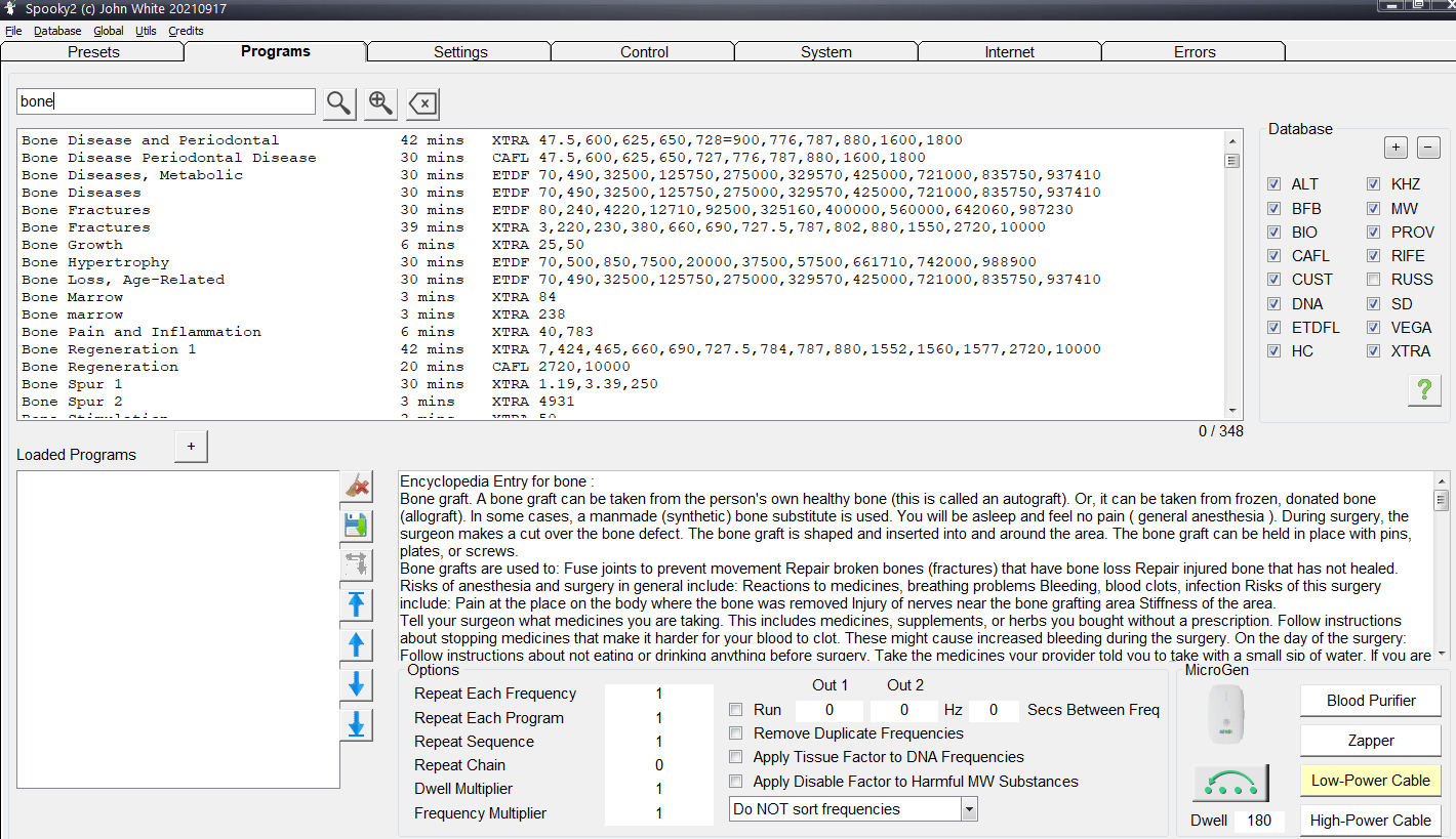 Then, go to Program tab, search the keyword “bone”, and you will find many related programs. Double click or click the “+” button on the programs you want to load. You will see these programs have been added into “Loaded Program” in the lower-left corner. Before you proceed to the next step, check again whether these programs are exactly what you want.