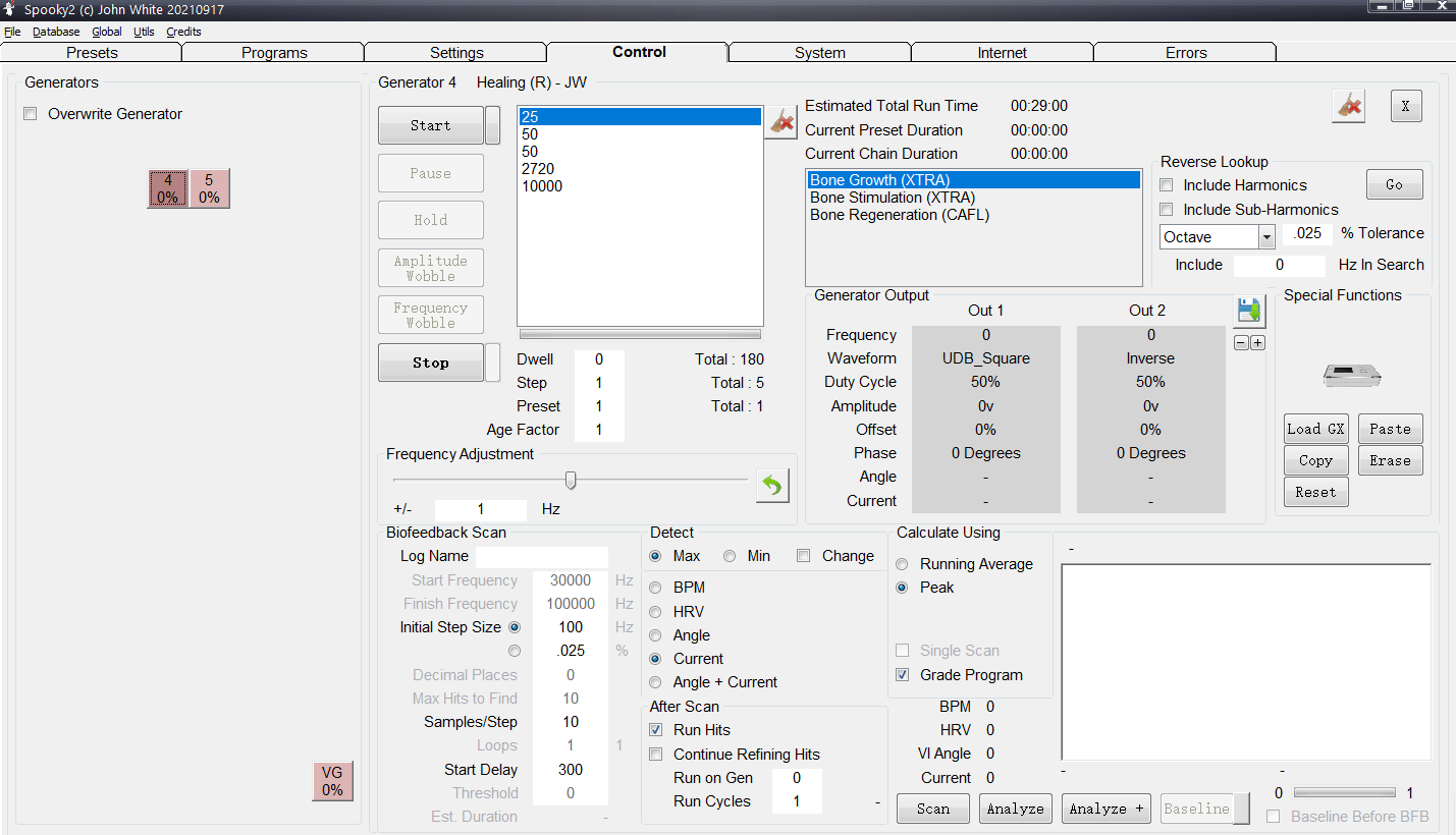 Open Spooky2 software. Go to Control tab, and you will find two generators that have been detected.