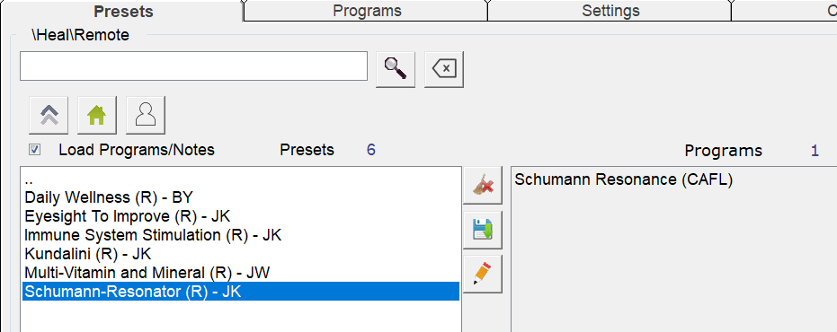 Go to Presets tab, Click >Heal >Remote, and you will see Schumann-Resonator (R) – JK.