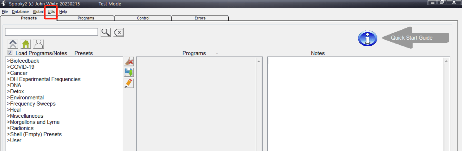 Second, open the Spooky2 software, click “Utils,” and identify the generator.