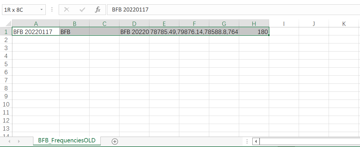 In the BFB_FrequenciesOLD.csv file, select all the past scan results or the scan results that you want to combine. Check the date of the scan by looking at the content under Column A. Right-click your mouse and select “Copy”, or use the “ctrl+c” command to copy the data.