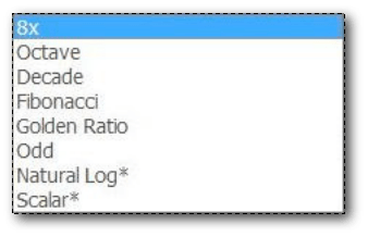 Octave: repeated doubling or halving – 2, 4, 8, 16, 32, 64, etc. This is based on music theory, and music is essentially applied mathematics. It has been proven to work superbly.