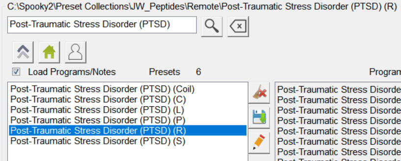 Spooky2’s groundbreaking JW_Peptide library offers a variety of presets for PTSD recovery. You can find them under the Presets tab: