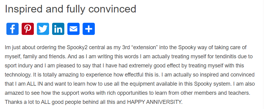 Spooky2 has helped thousands of people with their health issues and received much positive feedback and appraisal. Here is an example of how a customer used Spooky2 to treat their tendinitis: