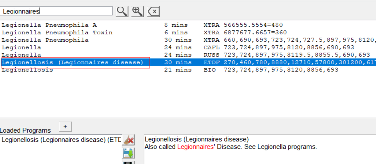 Step 2: Go to the Programs tab, search “Legionnaires” for relative programs, and choose the one you want.