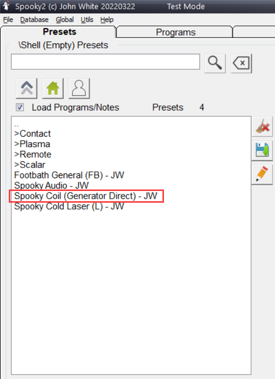 Open Spooky2 software, go to the Presets tab, and choose Shell (Empty) Presets > Spooky Coil (General Direct) – JW.