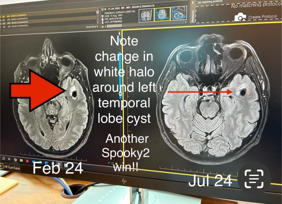 A remarkable case documented how a white halo around a brain cyst was significantly reduced after continuous frequency work with Spooky2. The user credited the balanced waveform of the H-Bomb for helping stabilize neurological activity while supporting natural repair.