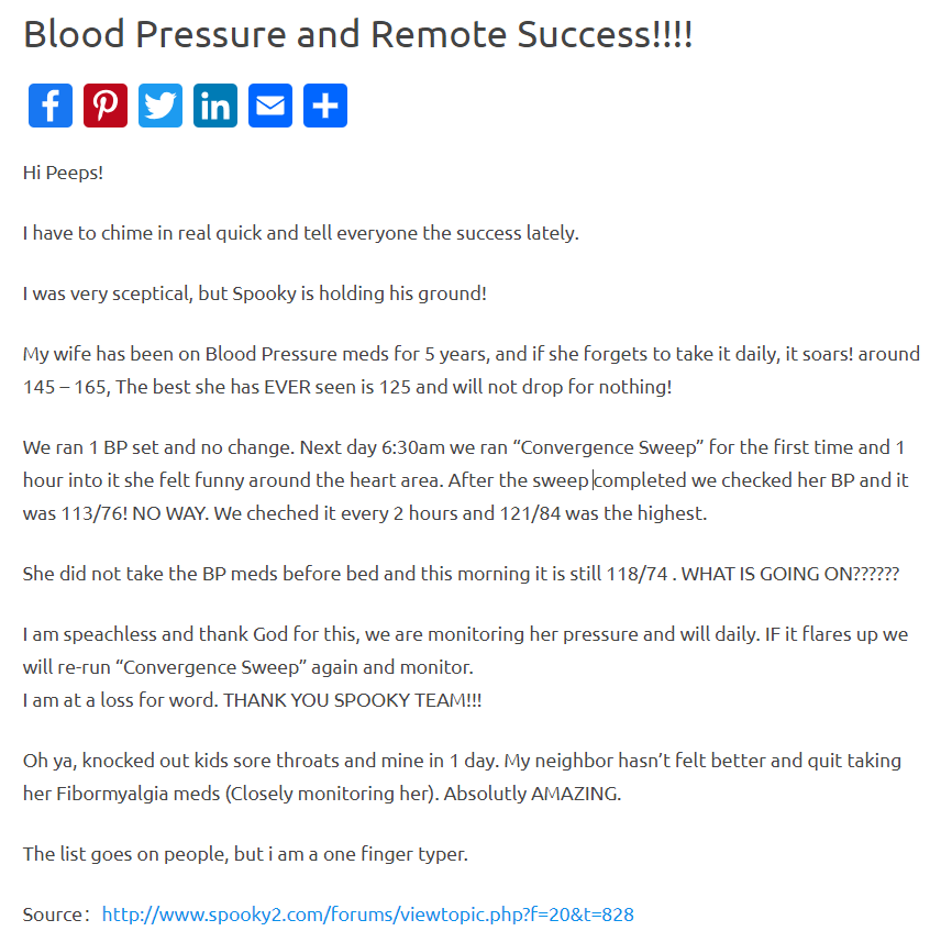 Spooky2 has helped many customers manage their blood pressure. The following is one of the examples: