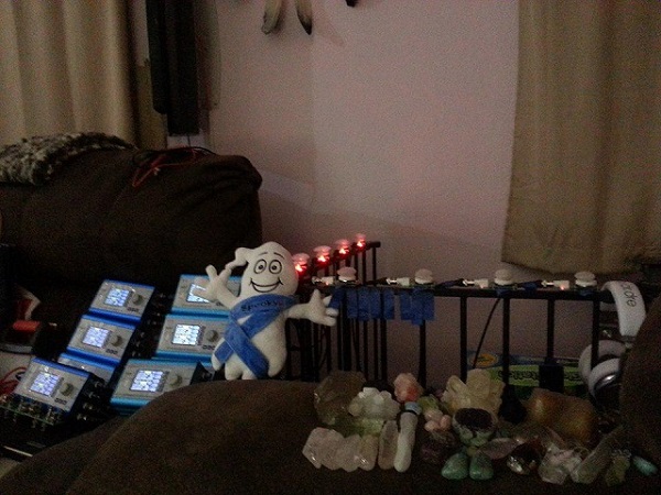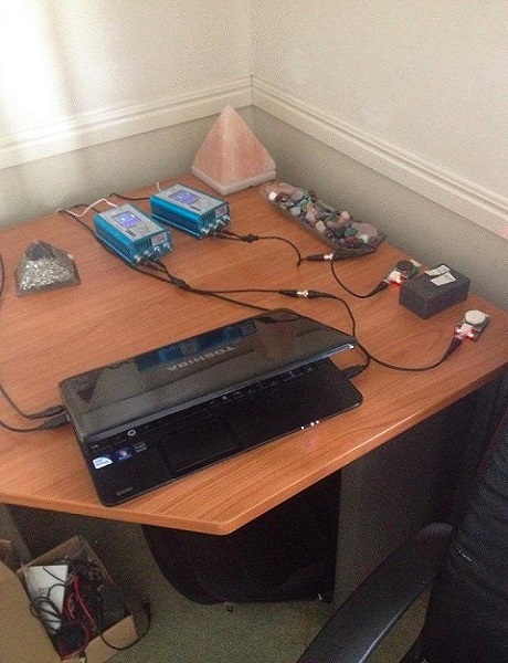 Some people are quite creative, and they use Remote together crystals, stones or Pyramids, etc. Here are their setups.