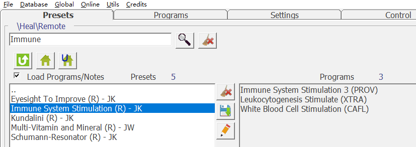 Immune System Stimulation Remote preset, created by Spooky2 user Jeff Kaczor, uses a custom waveform created by Spooky2 user Manuel Mallo. The harmonic waveforms (square, sine, sawtooth, in sawtooth) all take and produce the fundamental frequency (F) and 7 octave harmonics: F1, F2, F4, F8, F16, F32, F64, and F128. The generator can generate an 8-note chord instead of a single frequency, and each note is a harmonic of the fundamental frequency using this waveform.