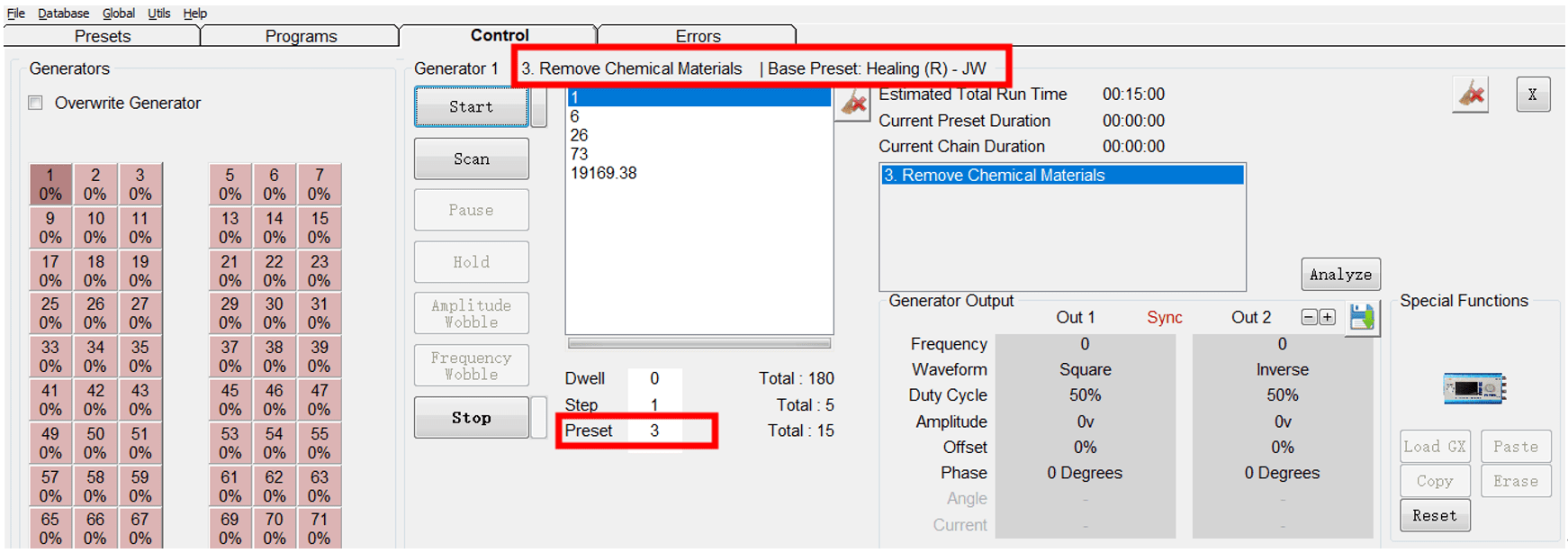 Hi, Trudy. Terrain Protocol just helps your body flush out toxins, and won’t give you a result. Most Spooky2 users who own multiple generators will spare one specific generator to run terrain continuously. If you do not have too many generators, you can run terrain for one cycle, and then do some other frequency treatment as you wish. About how to resume terrain, you just need to change the specific Preset # under the Control tab.