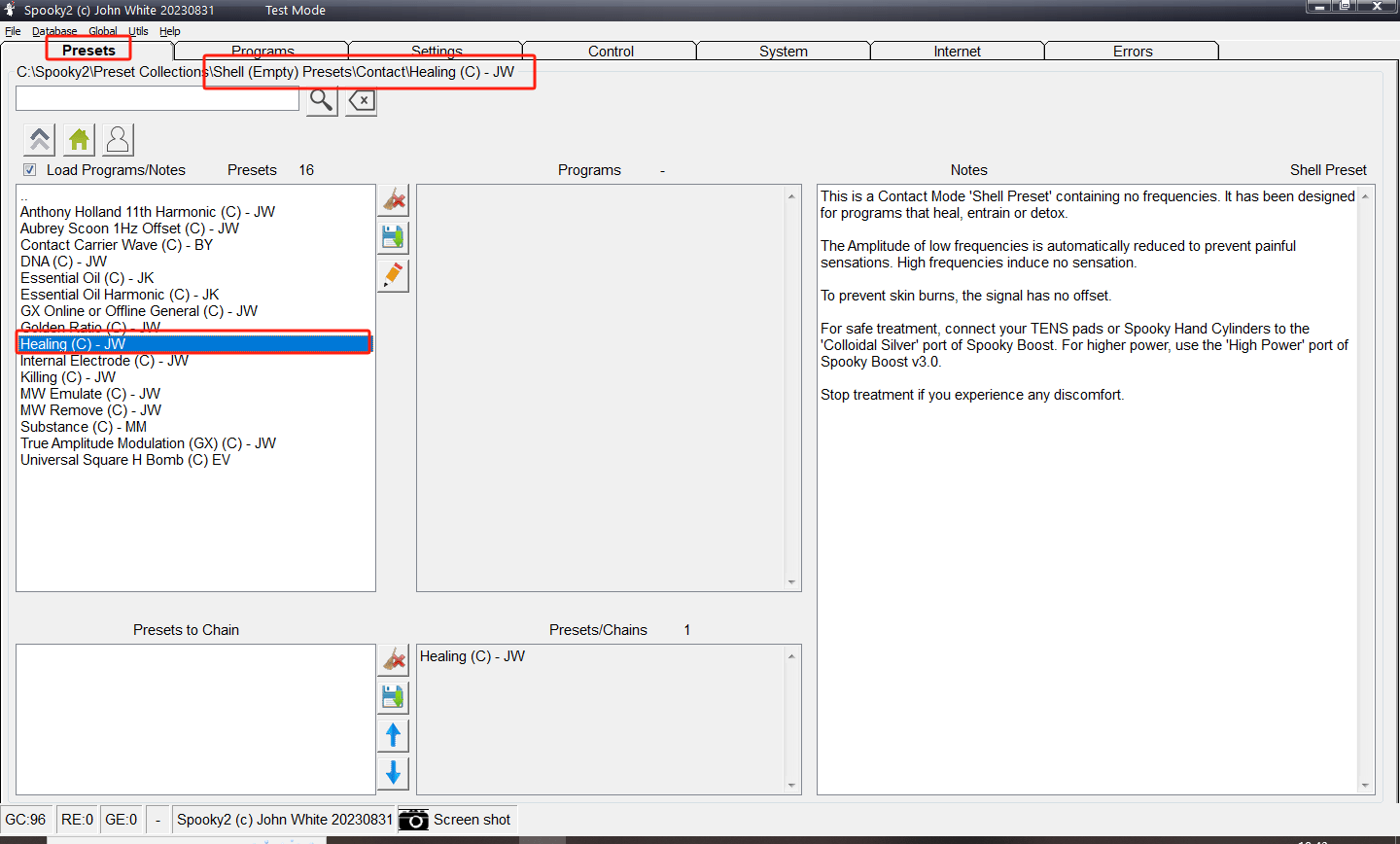 Step 2: Go to the Preset tab, and choose Shell (Empty) Presets > Contact > Healing (C) – JW.