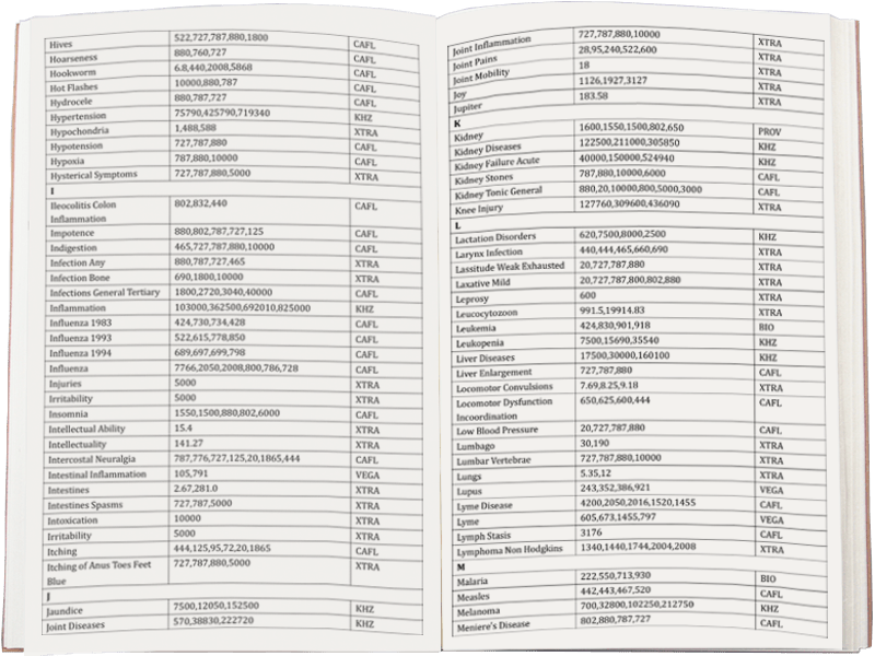 • Use this frequency list to treat common conditions, chronic problems and even serious problems.