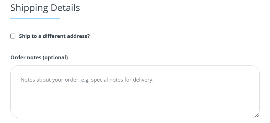 If your shipping address is the same as the billing address, you can add notes about your order here, e.g., special notes for delivery.