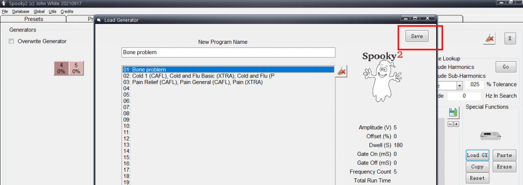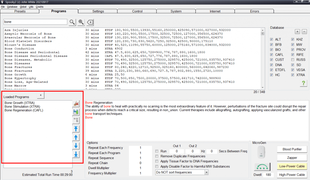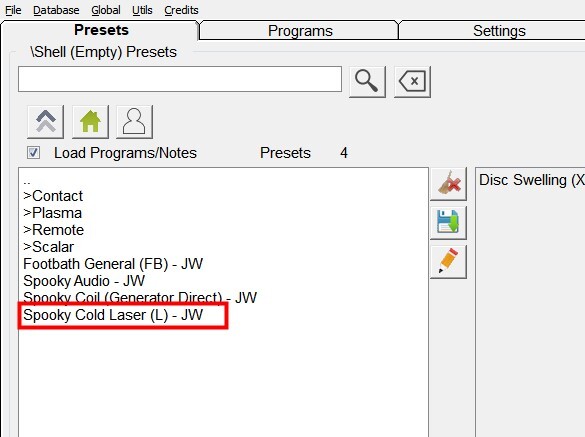 3. Launch Spooky2 software and choose presets and/or programs to run.