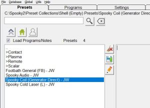 Step 2: Turn on generator and lanuch Spooky2 Software. You can run factory presets with contact the same way as shown in Remote mode. Here we will show you how to run a ” Shell Preset “, where you need to choose your own programs.