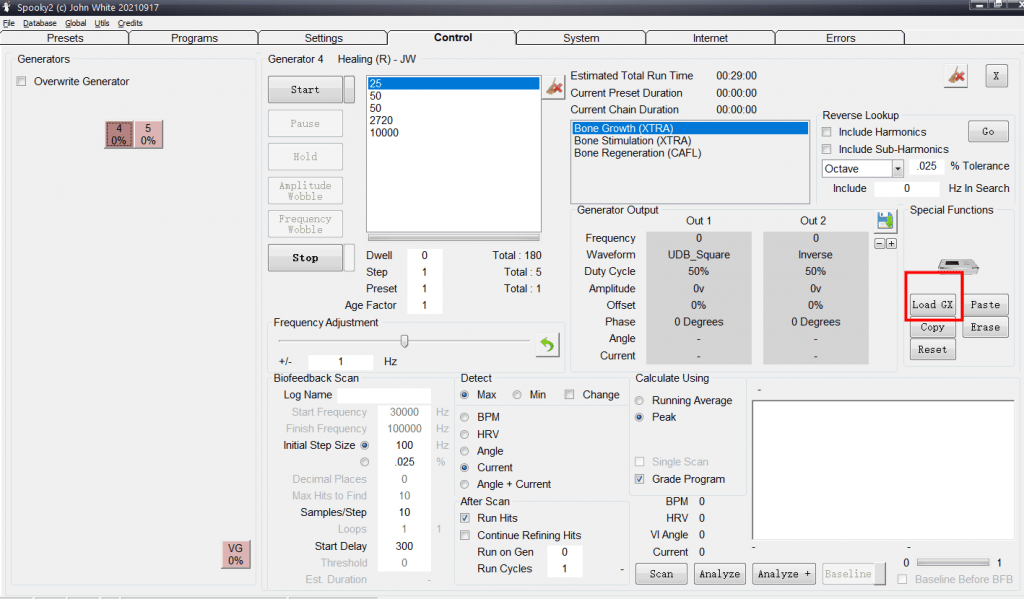 Turn on generator and launch Spooky2 software. Here we will show you how to run a factory preset.